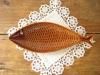 オリジナル・デザイン☆プレスガラスのお魚フォルムのプレートとチーク製トレイのセット