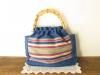 オリジナル☆ フレミッシュ織り(?)の手作りバッグ☆ ストライプ/ブルー
