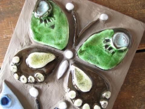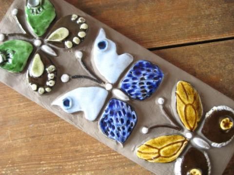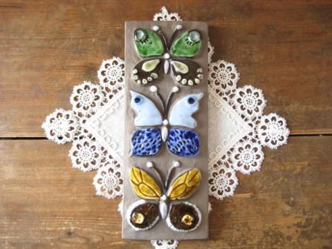 レア☆陶器壁掛け:Jie/ジィ社製・3匹のチョウチョウ♪ ミックス・カラー