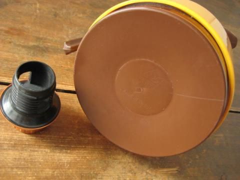 レア!ちょっとミニサイズの70's☆レトロ保温ポット/魔法瓶: イエロー&ブラウン