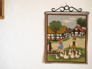Tvist刺繍のタペストリー: 南スウェーデンのニルスのお家